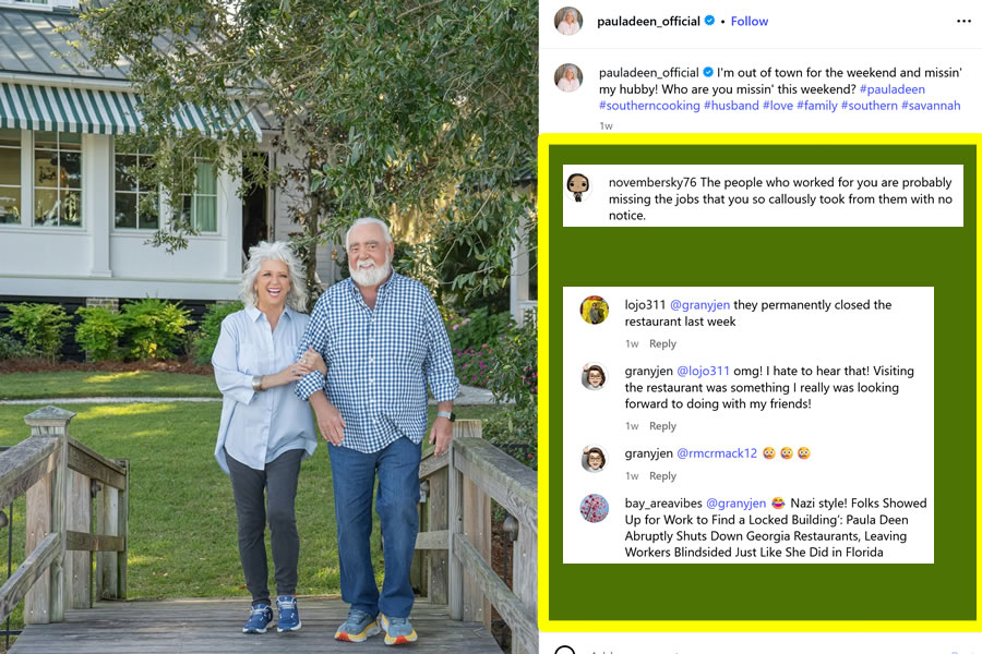This wasn’t an isolated incident. Just this month, Deen closed her flagship Savannah restaurants: The Lady & Sons and The Chicken Box – with 36 years of Southern cooking lore ending nearly overnight. Patrons and observers described the move as sudden. Deen’s announcement expressed gratitude toward customers and staff, but offered no explanation for the abrupt shutdown.