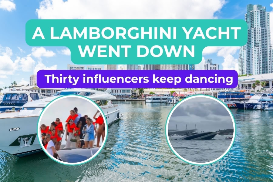@foxellacom A Lamborghini yacht went down. Thirty influencers keep dancing. Video via @leonatlantis You can read the article on www.foxella.com #Miami #lamborghini ♬ original sound – foxella