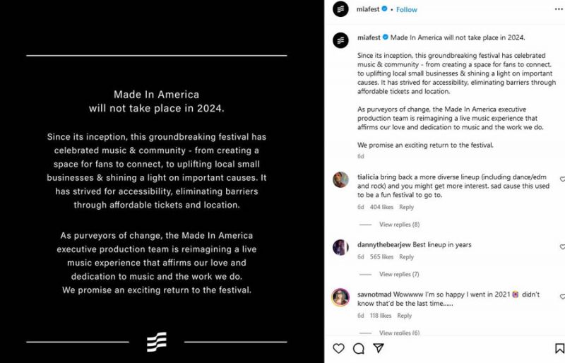 The statement emphasized the festival’s history of celebrating music, community, and accessibility.