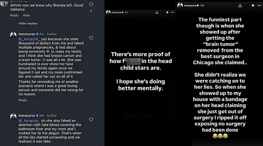 Responding to a fan who criticized him, Trace clapped back, saying, “Yes because she stole thousands of dollars from me and faked multiple pregnancies.” He then dropped bombshell after bombshell, alleging Brenda told him — and his family — that she had breast cancer and a brain tumor, all of which he says were lies.