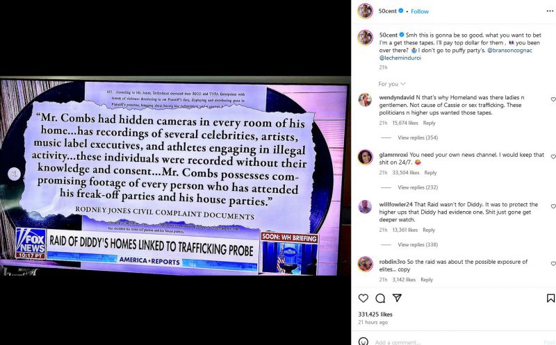 Despite their past feud, 50 Cent returned his focus to mocking Diddy’s situation on social media, posting memes and comments about the raid. The raid, linked to sex trafficking concerns, occurred amid several sexual assault lawsuits against Diddy, although his lawyer maintains his innocence and criticizes the tactics used during the raid. Diddy’s lawyer also clarified that none of his sons were arrested during the raid.