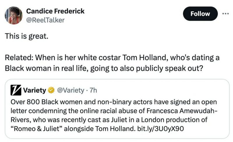 Tom Holland is under pressure to speak out in support of Francesca Amewudah-Rivers, his co-star in the West End production of Romeo & Juliet.