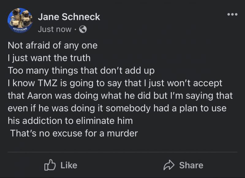 Jane says she had the full support of Aaron’s family and friends to post the images because she says she wants to bring attention back to his case. Jane says the photos weren’t taken by law enforcement, and it’s wrong cops allowed anyone in the house after Aaron’s body was discovered before first doing a full investigation into what happened. – Source