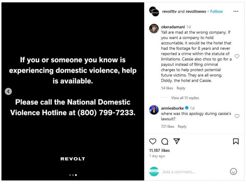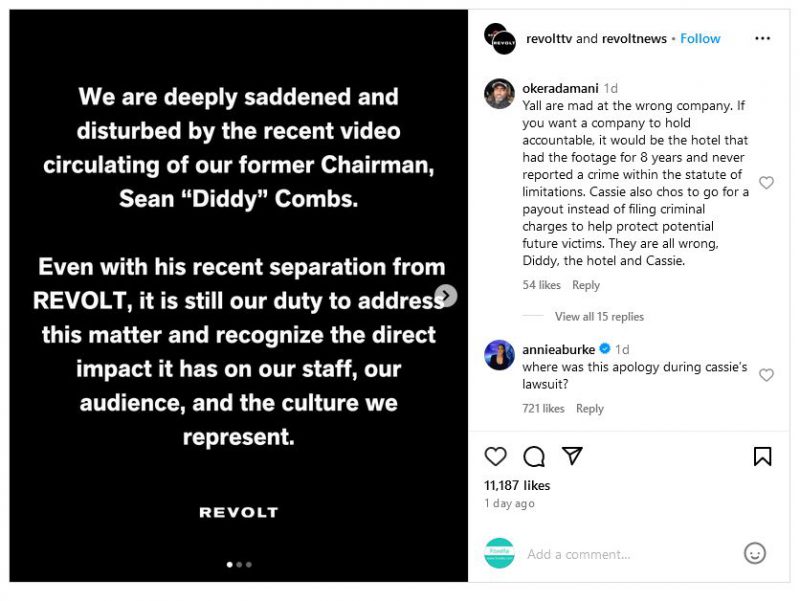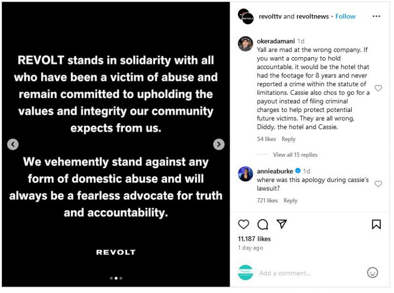 Revolt put out a statement saying they were deeply troubled by the video, even though Diddy isn’t with the company anymore.