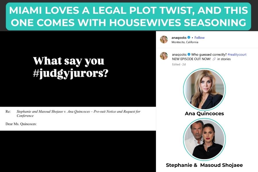 On Instagram, attorney, author, and RHOM alum Ana Quincoces teased that her show “Reality Court” just got its first defamation threat, posting about a letter and inviting her audience along for the ride.