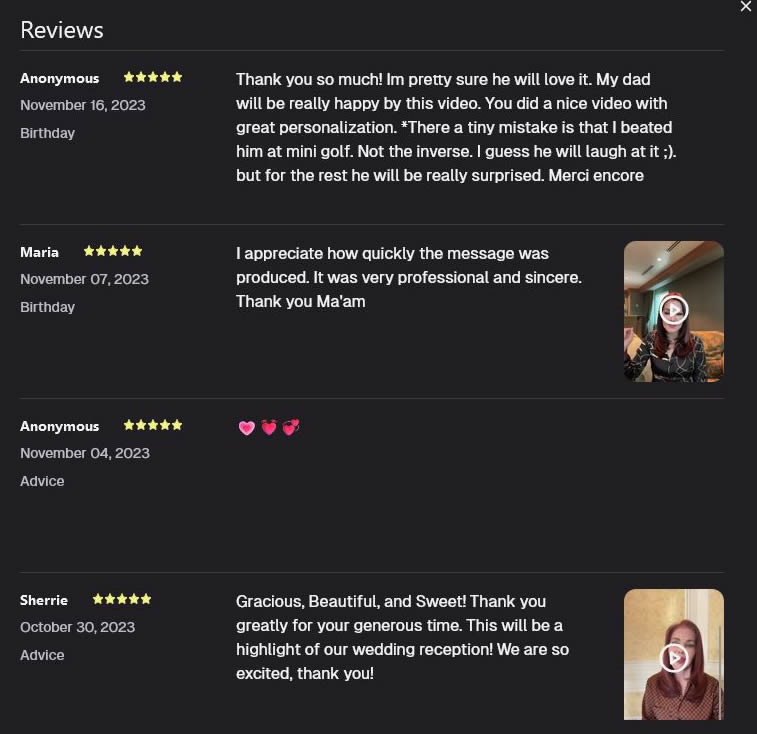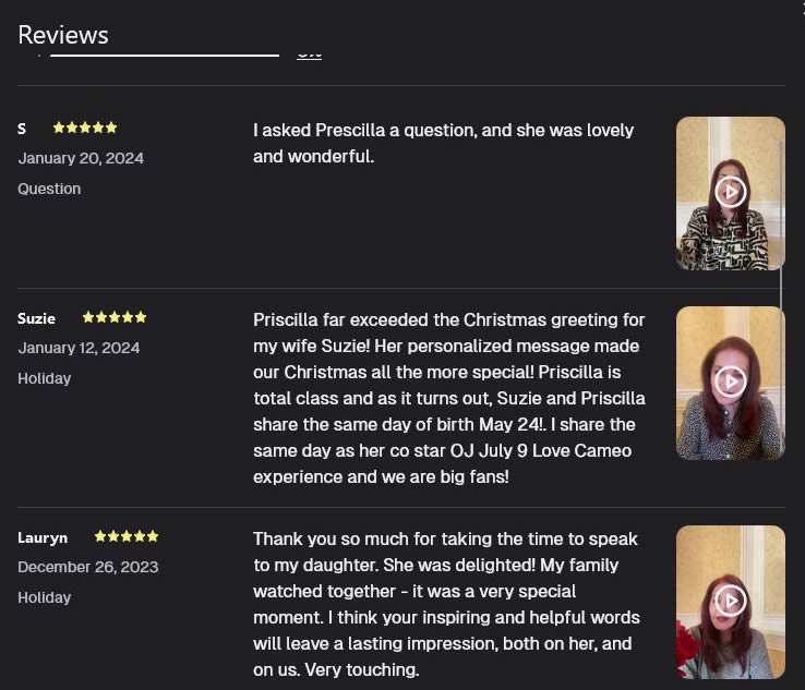 By the way came across her Cameos on Tiktok – She has sweet reviews.