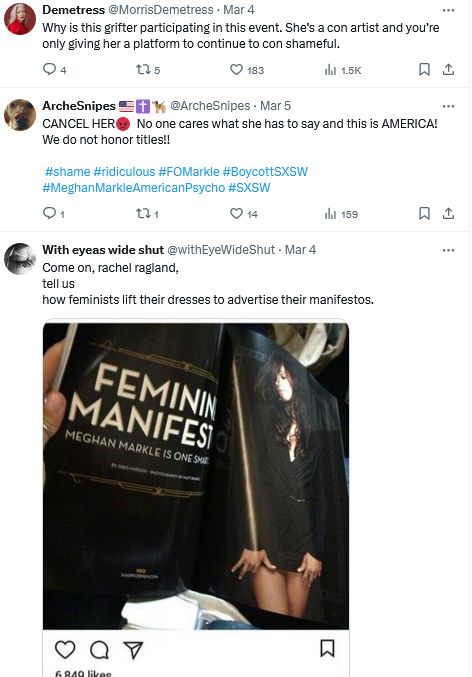 Meghan Markle joins a SXSW panel discussing women’s leadership in media alongside Katie Couric, Brooke Shields, Nancy Wang Yuen, and Errin Haines. The session, “Breaking Barriers, Shaping Narratives,” explores the importance of representation and the challenges women face in the industry, especially regarding mental health.