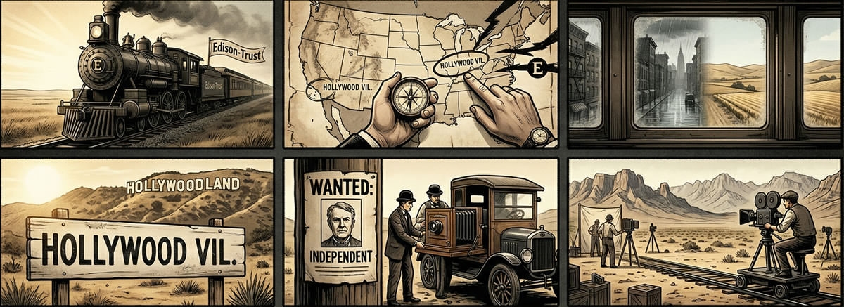 Hollywood wasn’t built for the weather. It was built by “pirates” running from Thomas Edison’s hired muscle. From smashed cameras to 289 lawsuits against a single man, here is the violent, fact-checked history of how the film industry fled West to survive.